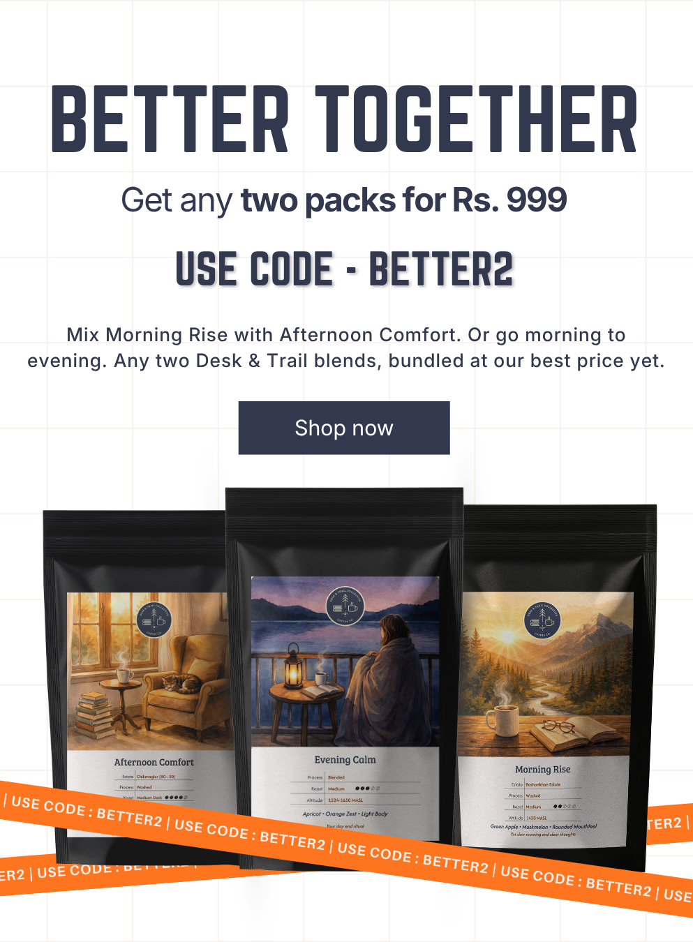 Get any two packs for Rs. 999. Use code - BETTER2